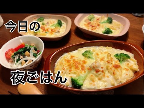 【料理】簡単!大好き!マカロニグラタンとパクパク食べられるほうれん草サラダを作る料理動画