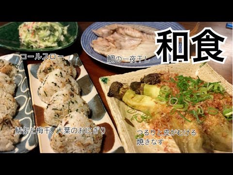 【料理】夏のさっぱり和食夜ご飯作り、焼き茄子もスルッとむける、クセになるおにぎり