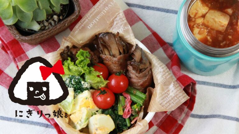 【親子弁】大根葉おにぎりとピーマンエノキの豚巻弁当~How to make today’s obento【LunchBox】~201時限目Radish greens Rice ball bento