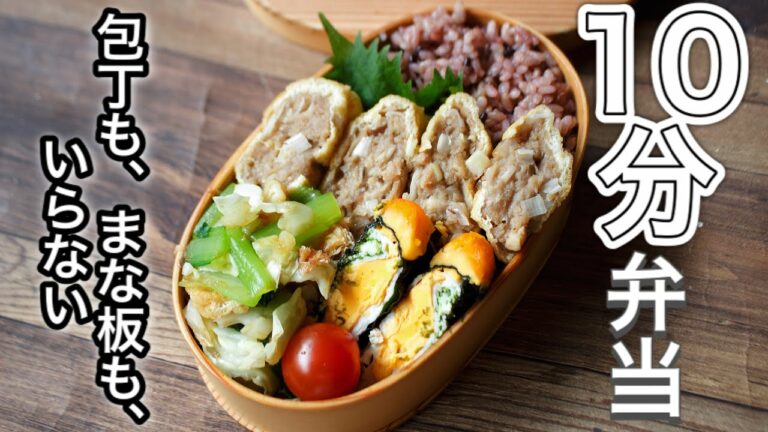 【 10分弁当 】油あげの肉詰め弁当〜包丁もまな板もいらない【 bento 】