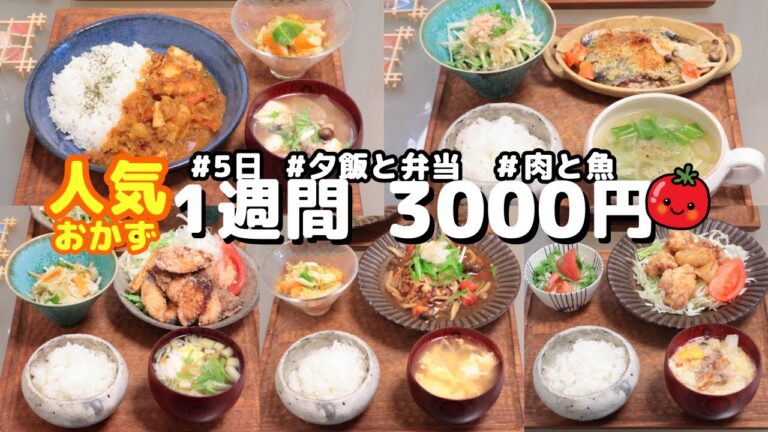 【人気おかず 1週間献立】 1週間5日 我が家で人気のおかず3000円 夜ご飯(2人)とお弁当(1人) (´・ω・`)(●`ε´●)2人暮らし(470)