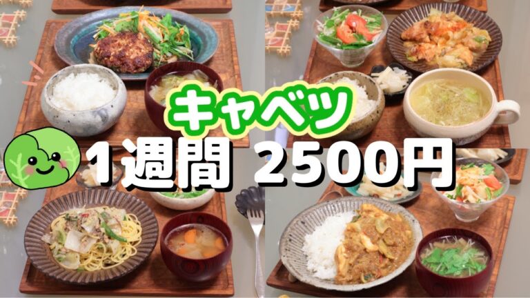 【夜ご飯 1週間献立】キャベツ1玉使い切り 1週間5日の献立 おかず2500円 (´・ω・`)(●`ε´●)2人暮らし(472)