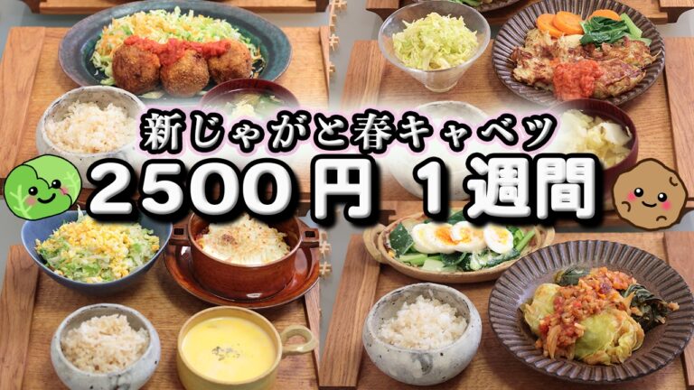 【夜ご飯 1週間献立】春キャベツと新じゃがいも 春野菜で節約レシピ 1週間5日の献立おかず2500円 (´・ω・`)(●`ε´●)2人暮らし(3月)(524)