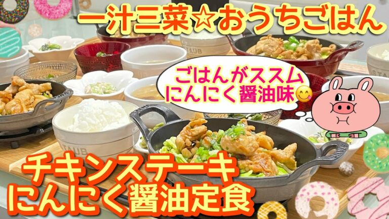 【晩ごはん】にんにく醤油でキャベツもごはんも進み過ぎ注意⚠️チキンステーキ定食