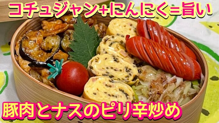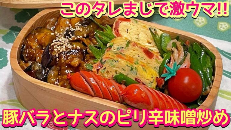 【お弁当】このタレを覚えとくと間違いない‼️👍豚バラとナスのピリ辛味噌炒め🍱