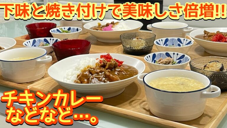 【晩ごはん】下味と焼き付けが肝心要‼️メイラアド反応で旨さ倍増👍チキンカレー🍛などなど…。