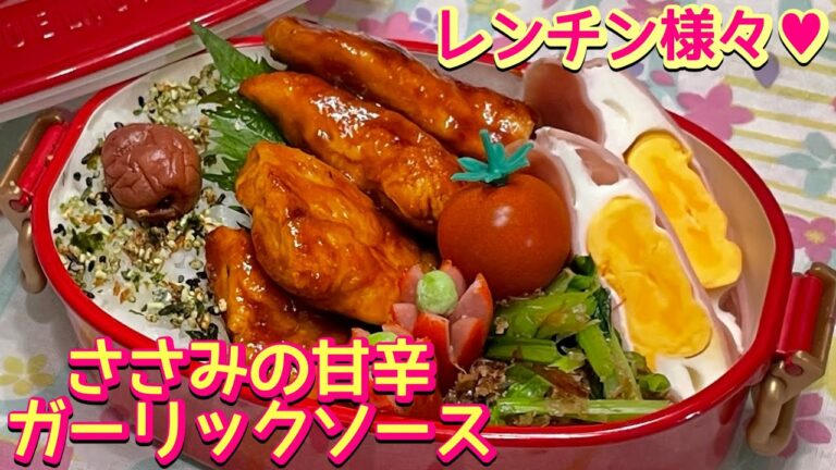 【お弁当】ソースがうんまッ😋👍ごはんがススムささみの甘辛ガーリックソース🍱