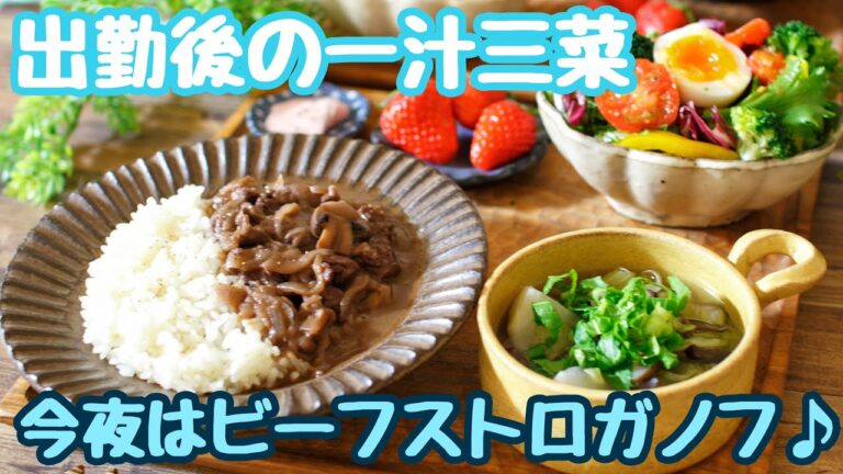 【料理動画〜夕飯編〜】今夜はビーフストロガノフ!〜出勤後の一汁三菜〜