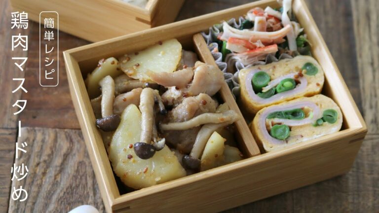 【お弁当作り】野菜もお肉もどんどんすすむ♪!鳥もも肉マスタード炒め弁当bento#622