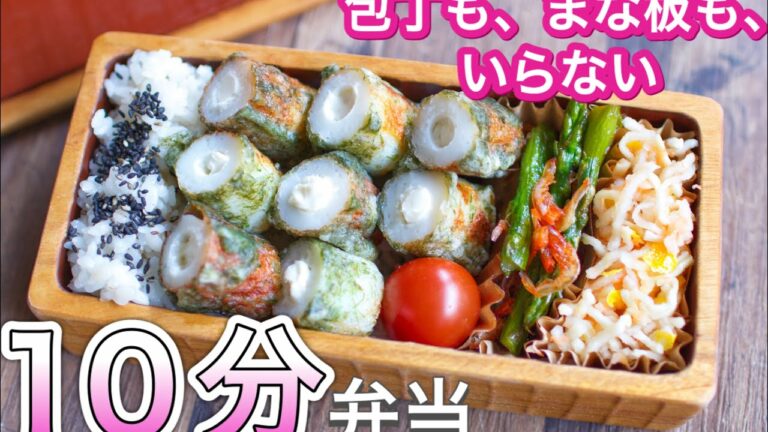 チーズがもれない!竹輪のチーズ磯辺揚げ(パート2)弁当〜包丁もまな板もいらない【 10分弁当 】 【 bento 】(342)