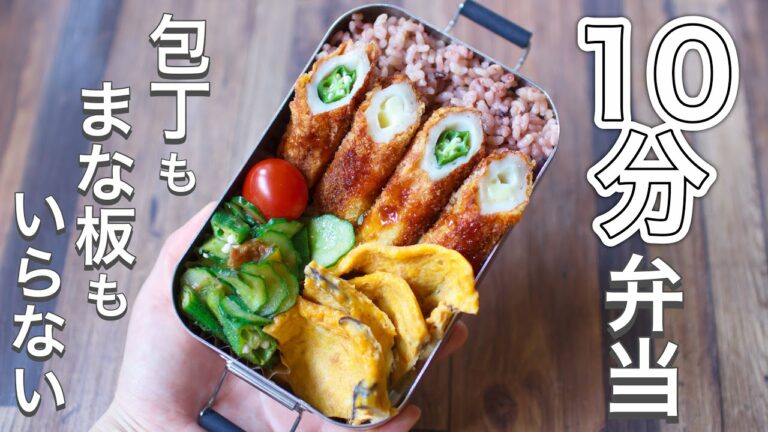 チーズとオクラのちくわフライ弁当〜包丁もまな板もいらない【 10分弁当 】 【 bento 】(380)