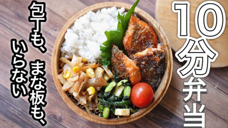 【 10分弁当 】サケのごま醤油焼き弁当〜包丁もまな板もいらない 【 bento 】