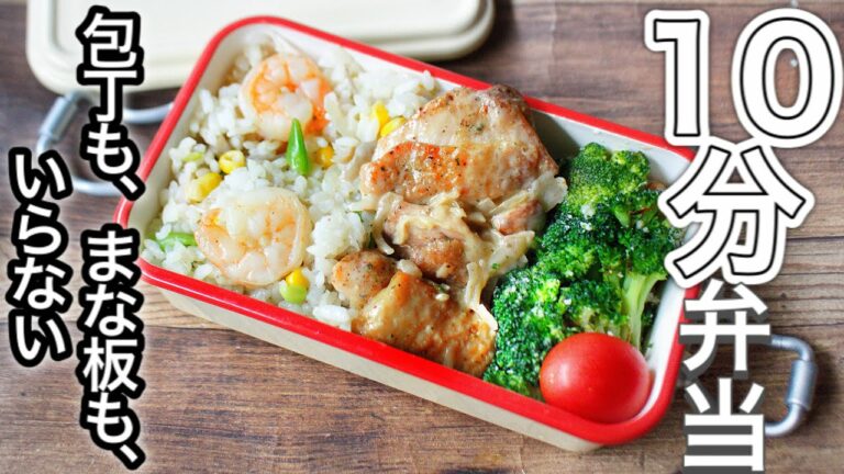 【 10分弁当 】エビピラ風とクリームチキン弁当〜包丁もまな板もいらない 【 bento 】