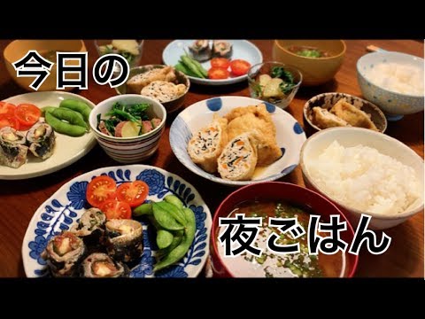【料理・夜ごはん】イワシの梅シソチーズ巻きと油揚げの五目巾着煮を作る簡単料理動画。