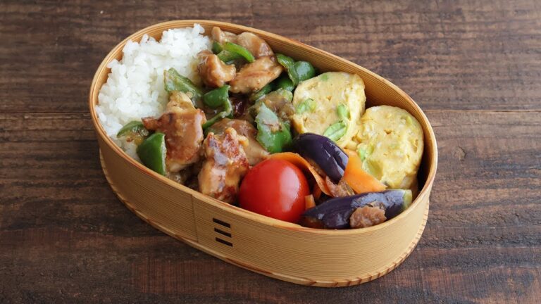 【10分弁当】夏野菜簡単レシピ!ピーマンと鶏肉の甘辛味噌炒め弁当(包丁いらず)