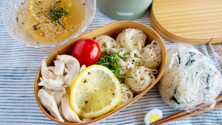 【節約弁当】コレなら食べれる!暑い夏にツルッと美味しいヘルシーささみのだしレモンそうめんとわかめうどんおにぎり弁当#1045 #bento #ideas #Japanese