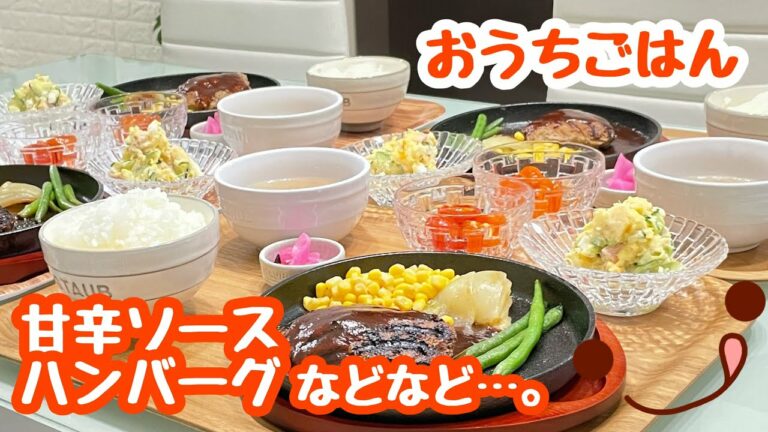 【おうちごはん】献立🍽熱々ジュ〜ジュ〜ッ♬甘辛ソースハンバーグ などなど…。