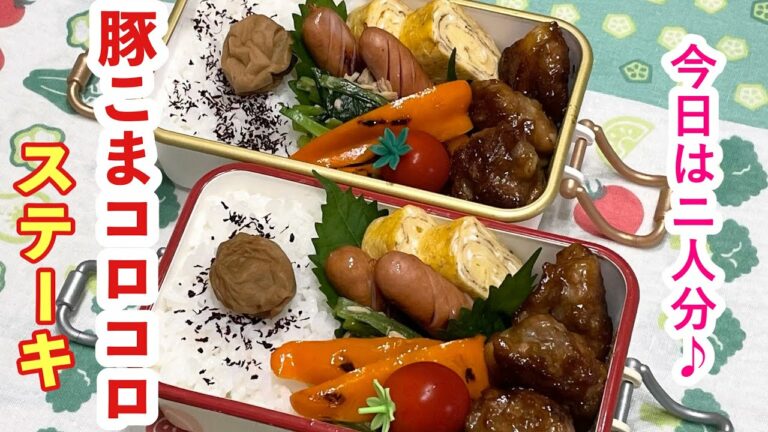 【お弁当】今日は2人分!!!豚こまコロコロステーキ