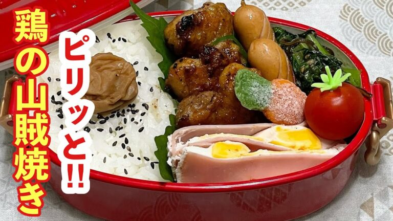 【お弁当】ピリッと旨い!!!鶏の山賊焼き。たまごが行方不明