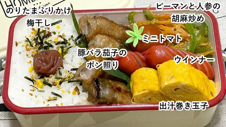 【お弁当】お弁当作り/フライパン1つでお弁当/豚バラ茄子のポン照り