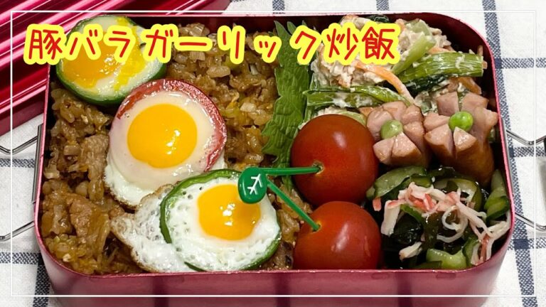 【お弁当】お弁当作り/簡単弁当/豚バラガーリック炒飯