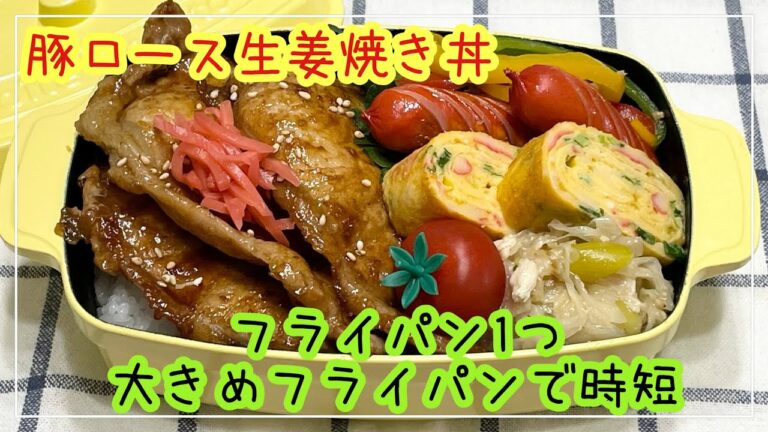 【お弁当】お弁当作り/フライパン1つ/大きめフライパンで時短/豚ロース生姜焼き丼
