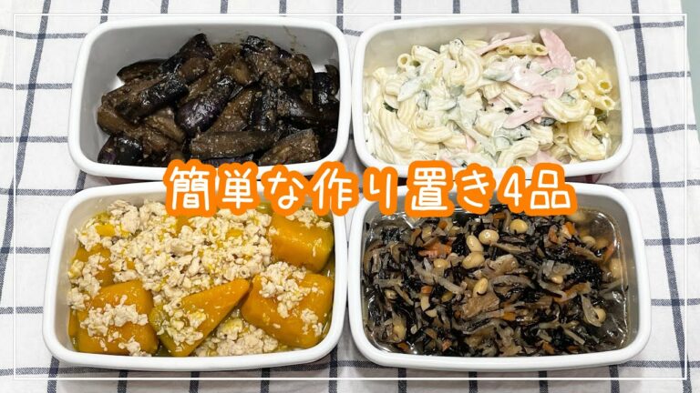 【簡単な作り置き4品】茄子の胡麻酢炒め/ひじき煮/マカロニサラダ/南瓜のそぼろ煮