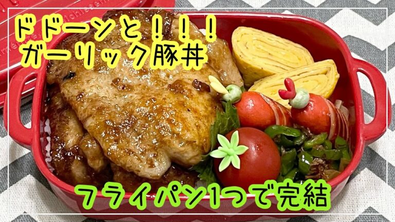 【お弁当】お弁当作り/フライパン1つで完結/ドドーン!!!ガーリック豚丼