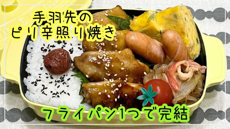 【お弁当】お弁当作り/フライパン1つで完結/手羽先のピリ辛照り焼き
