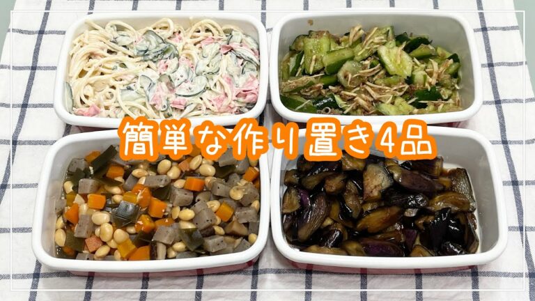 【簡単な作り置き4品】五目煮/叩き胡瓜とおかかの生姜醤油和え/茄子南蛮/スパサラ