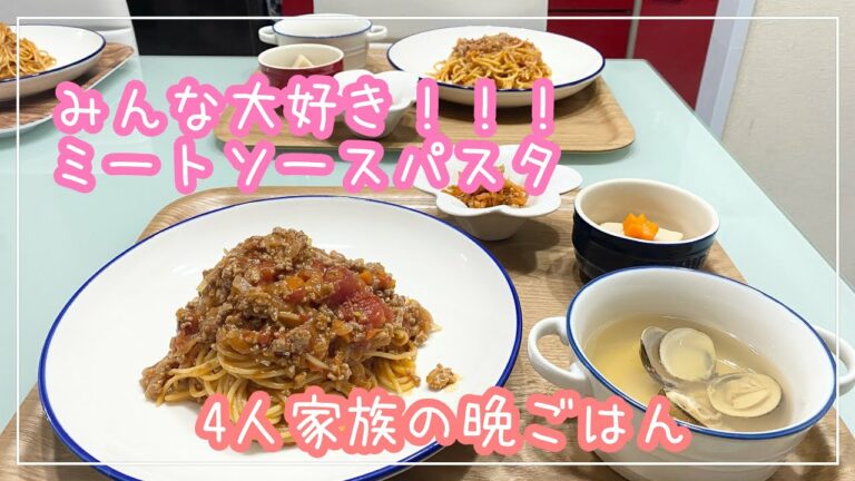 【献立】4人家族の晩ごはん/ミートソースパスタ