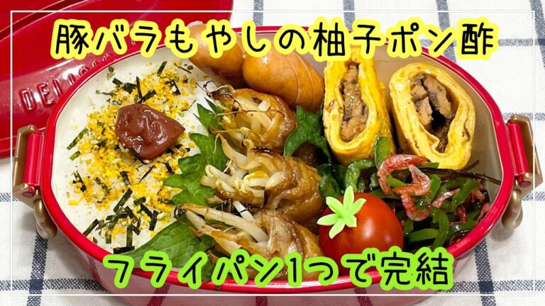 【お弁当】お弁当作り/bento//豚バラもやしの柚子ポン酢/フライパン1つで完結《アラフィフ旦那弁当》