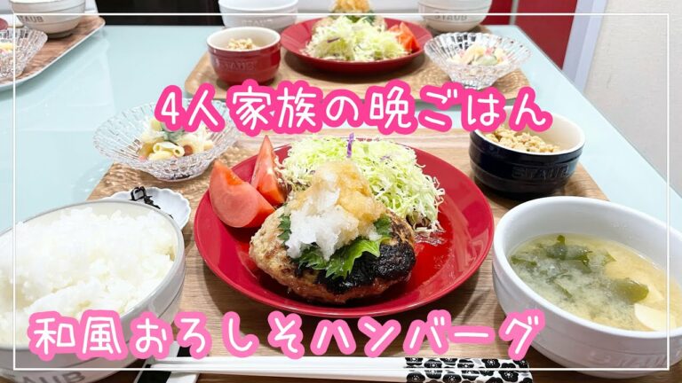 【献立】4人家族の晩ごはん/和風おろしそハンバーグ