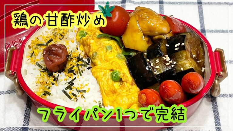 【お弁当】お弁当作り/bento/鶏の甘酢炒め/フライパン1つで完結《アラフィフ旦那弁当》