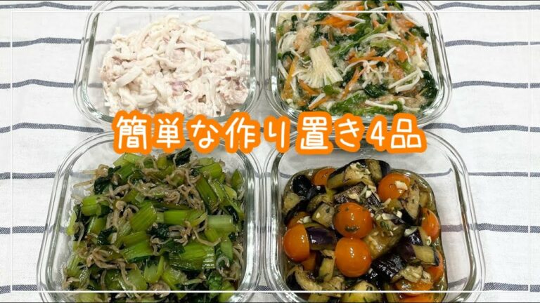 【簡単な作り置き4品】ほうれん草とえのきのみぞれ和え/大根とツナの梅マヨサラダ/ミニトマトと茄子の中華マリネ/小松菜のお雑魚炒め