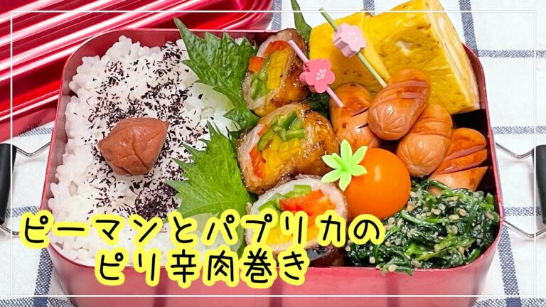【お弁当】お弁当作り/bento/ピーマンとパプリカのピリ辛肉巻き《アラフィフ旦那弁当》