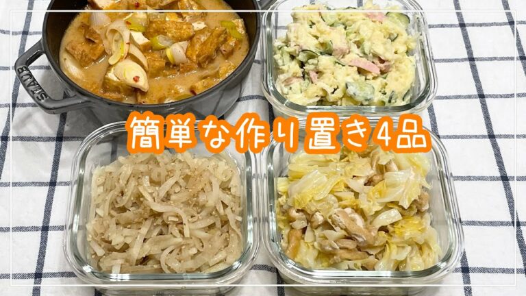 【簡単な作り置き4品】厚揚げと長ネギのピリ辛胡麻炒め/ポテトサラダ/キャベツと油揚げの中華蒸し/大根ナムル