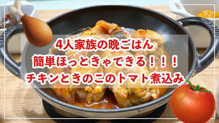 【献立】4人家族の晩ごはん/簡単ごはん/チキンときのこのトマト煮込み