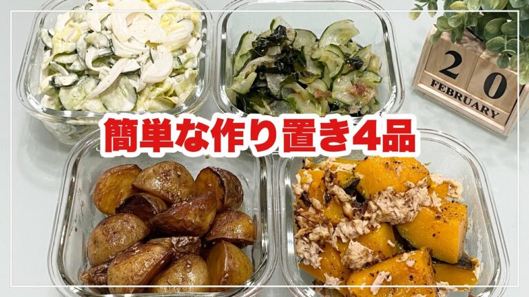 【簡単な作り置き4品】南瓜とツナのホットサラダ/新じゃがの甘辛炒め/胡瓜とわかめの酢の物/キャベツの中華風サラダ