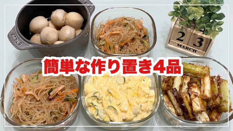 【簡単な作り置き4品】長ネギのお浸し/里芋煮物/春雨サラダ/玉子サラダ