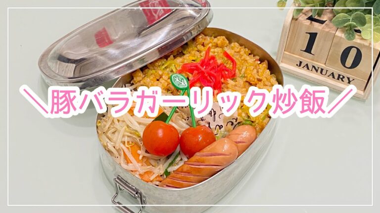 【お弁当】日々のお弁当/bento/豚バラガーリック炒飯《旦那弁当》