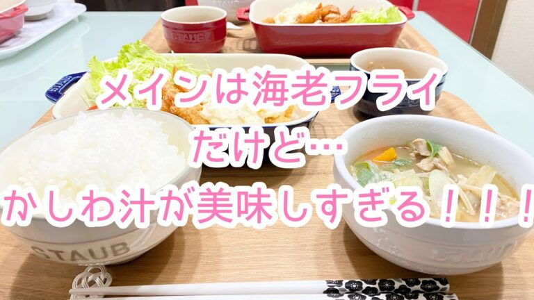 【料理】ばんごはん/海老フライ/かしわ汁《2019/12/20 夕飯》