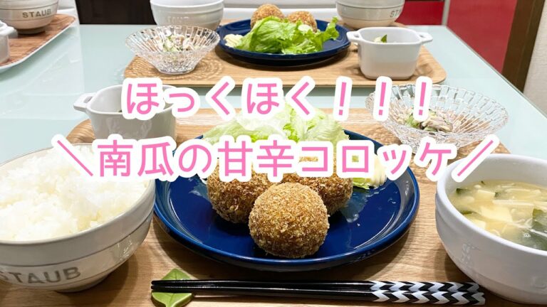 【料理】ばんごはん/南瓜の甘辛コロッケ/チキンと胡瓜の胡麻マヨサラダ《2019/12/18 夕飯》
