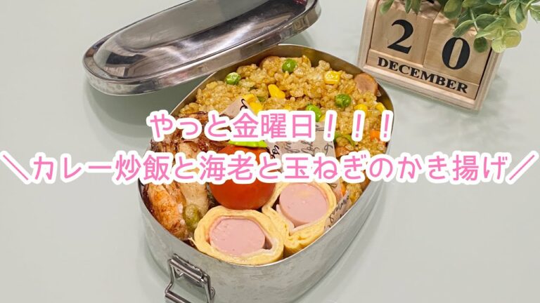 【お弁当】日々のお弁当/bento/カレー炒飯/海老と玉ねぎのかき揚げ《旦那弁当》