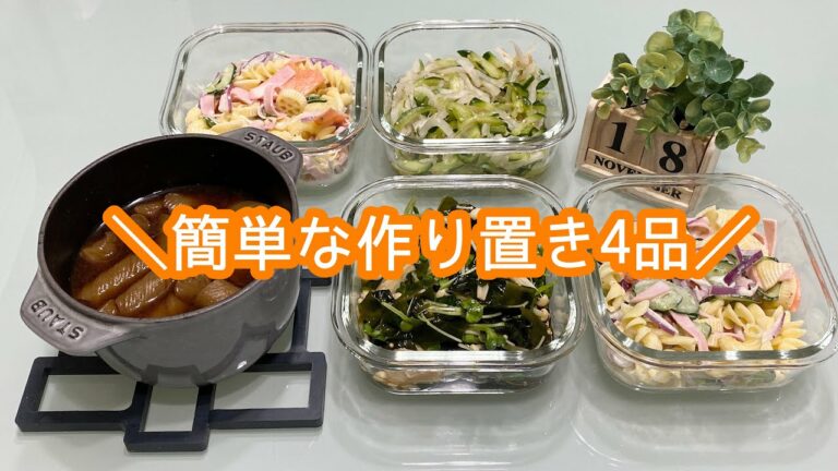 【作り置き】簡単な作り置き4品/マロニーサラダ/胡瓜の胡麻和え/南瓜の蒸し煮/大根葉のおかか炒め