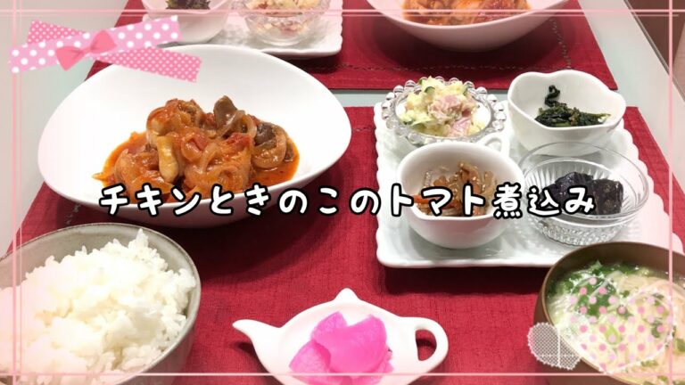 【料理】焼付けて調味料入れてほっとくだけ‼️チキンときのこのトマト煮込み《2019/07/29 夕飯》