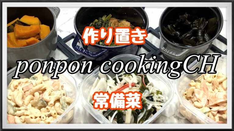 【作り置き常備菜】南瓜煮・小松菜と油揚げの胡麻酢蒸し・昆布煮・マカロニサラダ・新玉ねぎの酢の物