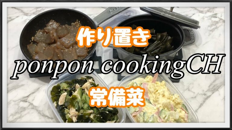 【作り置き常備菜】ポテトサラダ・酢の物・蒟蒻のにんにく醤油炒め・結び昆布の煮物