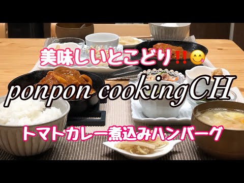 【料理】美味しいとこどり‼️😋トマトカレー煮込みハンバーグ🍳2019/03/26 夕飯