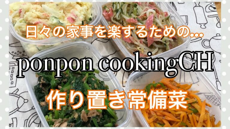 【作り置き常備菜】もやしの中華サラダ・ポテトサラダ・ほうれん草とツナの胡麻和え・人参とピーマンのおかか炒め